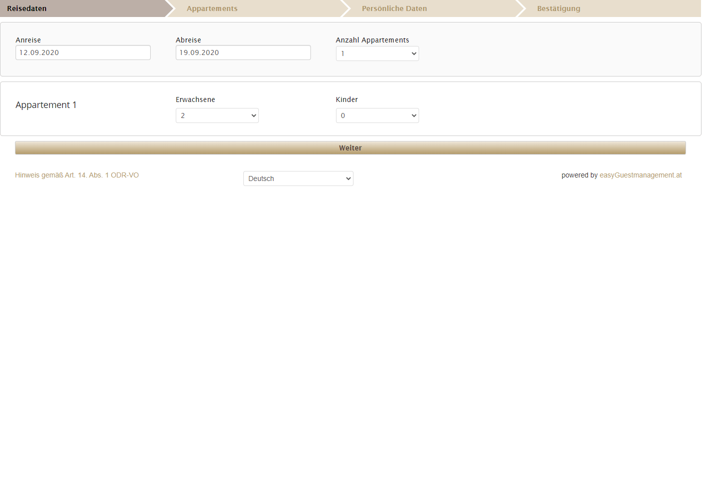 Sie haben bereits eine eigene Homepage? Mit easyGuestmanagement können Sie ganz einfach alle unsere Tools in Ihre eigene Homepage integrieren. Einfach den Code kopieren und an der entsprechenden Stelle einfügen und die Module passen sich automatisch an die Höhe und Breite an. Die Homepagetools von easyGuestmanagement sind in einem schlichten Design gehalten, sodass sie sich nahtlos in jede Webseite integrieren lassen. Dabei wurde von Beginn an höchsten Wert auf eine Optimierung für mobile Endgeräte gelegt. Nicht nur, weil immer mehr Nutzer vom Smartphone oder Tablet buchen möchten sondern auch weil die großen Suchmaschinen Webseiten abstrafen, die nicht mobiloptimiert sind. Die Farbabstimmung wird von uns direkt vorgenommen. Die gängigen Homepage-Baukästen wie Jimdo, Wix.com, 1&1, Joomla, WordPress und alle weiteren CMS (Content Management Systeme) bieten die entsprechenden Möglichkeiten, unsere Homepagetools inkl. Booking Engine mit wenigen Klicks einzubinden. Hier finden Sie ein Beispiel: www.zugspitzhof.at